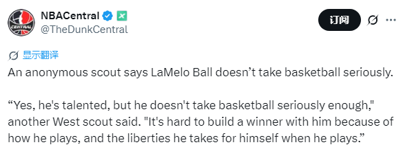 另一位西部球探说道:“没错,他很有天赋,但对篮球不够认真。由于他的打球方式,以及在场上为自己争取的特权,很难围绕他打造一支冠军球队。会有人冒险签下他吗?肯定会。但黄蜂队不会接受低价抛售他的方案。”