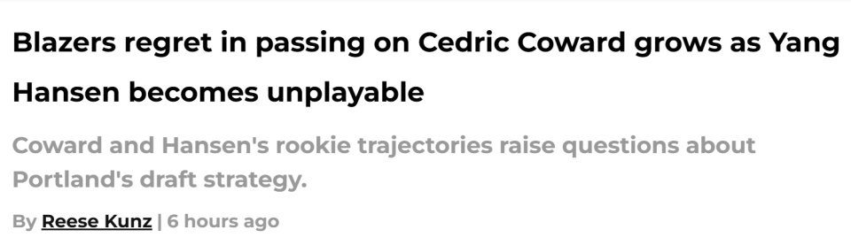 2025-11-08 06:00北京时间11月8日,开拓者队记Reese Kunz撰文提到杨瀚森,质疑球队未给这位中锋创造成功的环境,并表示按照球队现有的阵容和打法本可以选择考沃德。以下是Kunz的文章——