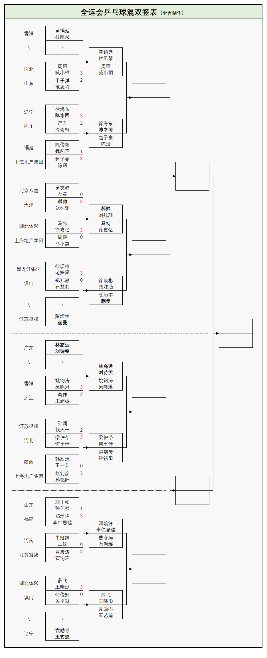 郑培锋/李仁思佳3-1刘丁硕/孙艺祯;