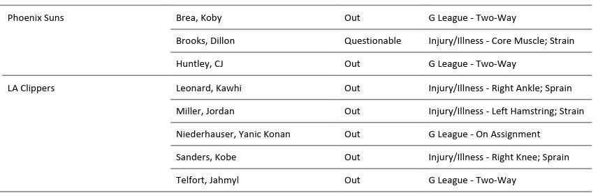 太阳队方面,因核心肌群拉伤而连续缺席了6场比赛的狄龙-布鲁克斯有望回归,他的状态已变更为出战成疑。
