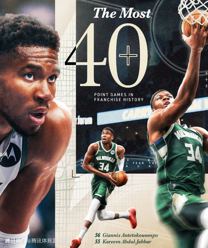 根据数据统计显示,这是字母哥职业生涯第56次单场40+,他也超越了贾巴尔,成为雄鹿队历史上单场40+次数最多的球员。
