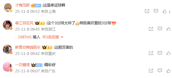 有球迷认为杨瀚森这个三分属于幸运球,特别喜欢看投三分球。