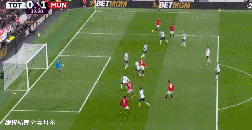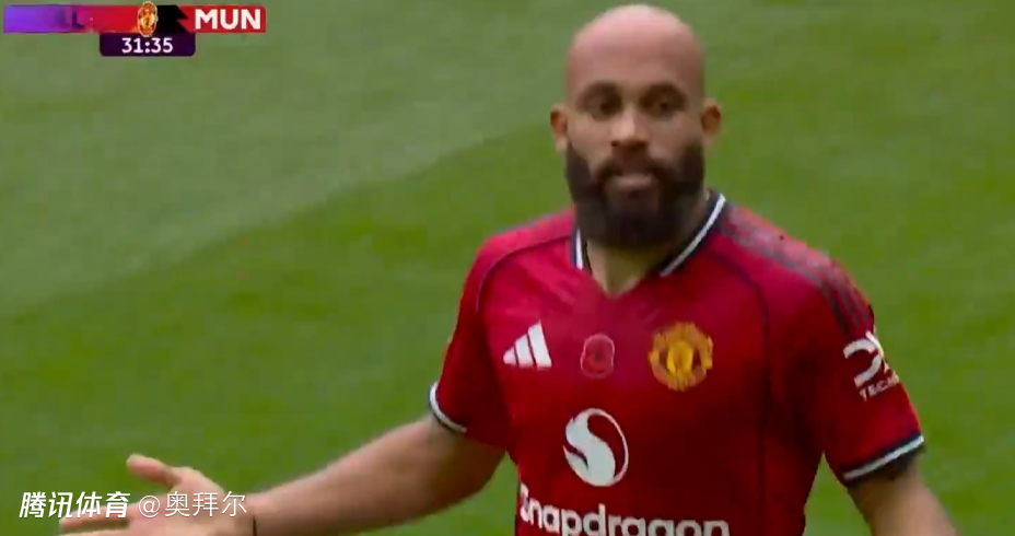 比赛的第31分钟,迪亚洛右路横传,姆贝莫头球冲顶破门。进球之后,姆贝莫双手一摊,示意球进得如此容易,这是曼联此役的第一次射正。