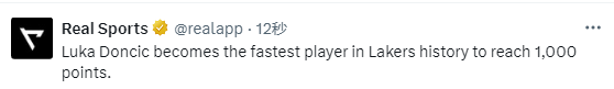 首节比赛中,东契奇打满12分钟,7投3中,其中三分5中2,罚球6中4,得到12分3篮板3助攻。根据数据统计显示,凭借首节发挥,东契奇成为湖人队史达成千分最快球员。