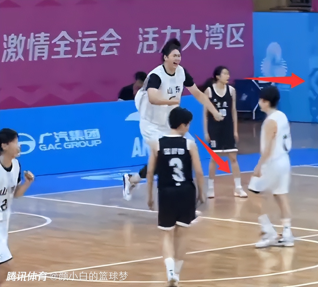 张子宇实战暴扣成功后全队都露出了灿烂的笑容,但大家应该注意一下这些重庆队的孩子,她们的表情都是无奈,而且有一位小球员还望着替补席的位置,她应该是想跟教练说‘这还怎么玩?’