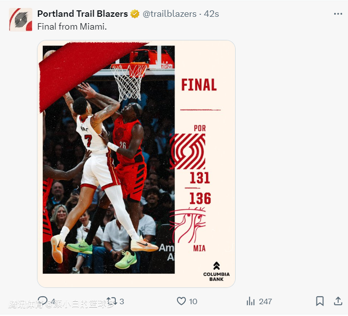 2025-11-09 12:00北京时间11月9日,开拓者131-136被热火逆转无缘连胜。这场比赛是极限拉锯战,首节开拓者领先3分,次节打完落后7分,三节打完开拓者还落后3分,末节两队比分交替上升打到决胜时刻还是开拓者稍逊一筹。