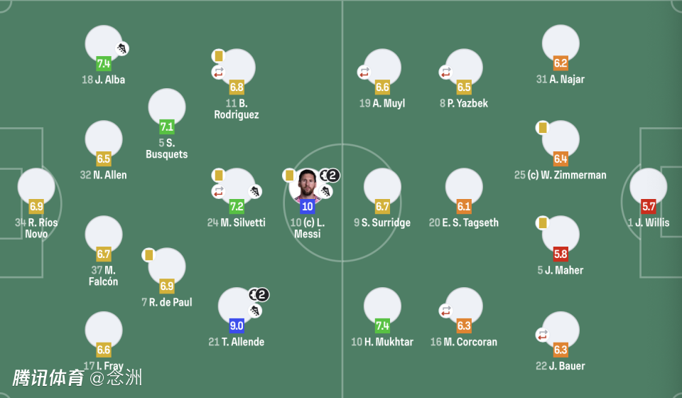 第73分钟,梅西肋部直塞策动,阿尔巴禁区左侧倒三角传球,阿连德左脚推射空门得手,3-0!