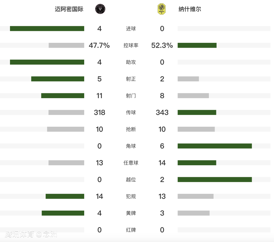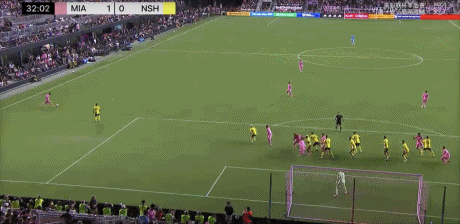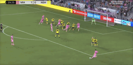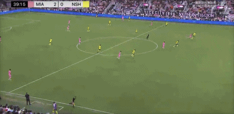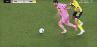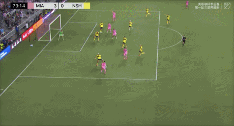 第10分钟,阿连德传球,梅西一条龙突破至禁区前,面对4人包夹,左脚低射入网,1-0!迈阿密国际取得领先。