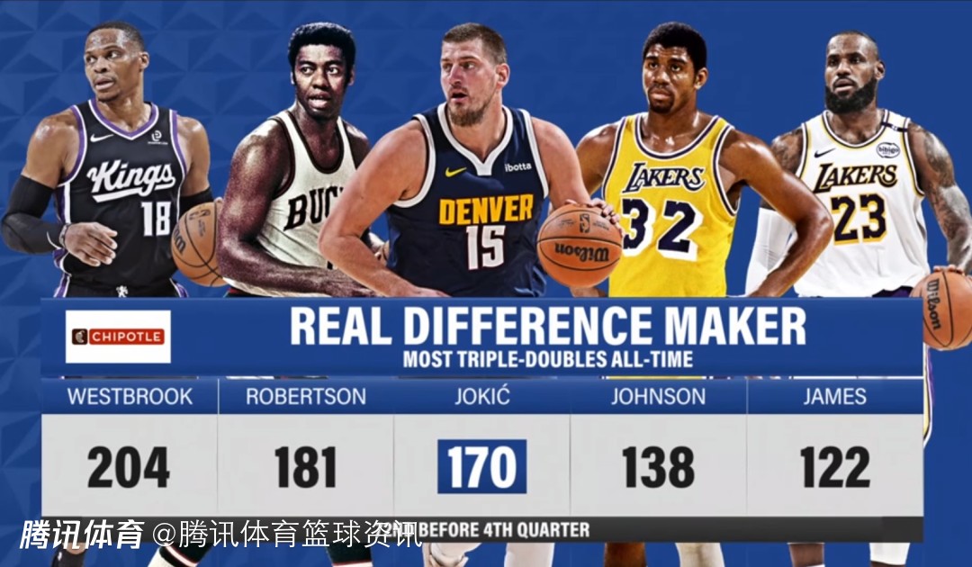 根据数据统计显示,这是约基奇职业生涯第170次三双,也是第72次在前三节比赛就完成三双。目前他的三双次数仅次于威斯布鲁克和奥斯卡-罗伯特森,排在NBA历史第三位。
