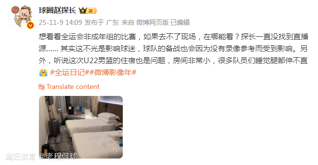 “另外,听说这次U22男篮的住宿也是问题,房间非常小,很多队员们睡觉腿都伸不直。”