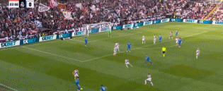 50分钟,德弗鲁托斯小角度扫射击中边网。