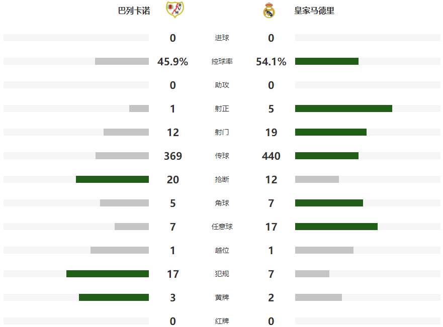 巴列卡诺:巴塔拉;拉蒂乌,勒热纳,门迪,查瓦利亚;乌奈-洛佩斯(83'贡巴乌),西斯;德弗鲁托斯(71'奥斯卡-瓦伦丁),佩德罗-迪亚斯(27'埃斯皮诺),阿尔瓦罗-加西亚(83'阿莱芒);帕拉松(71'弗兰-佩雷斯)
