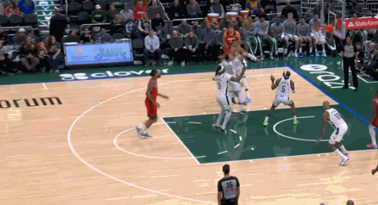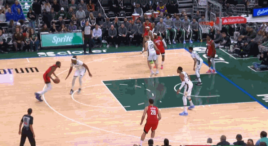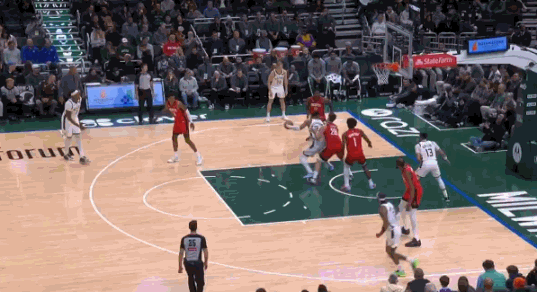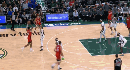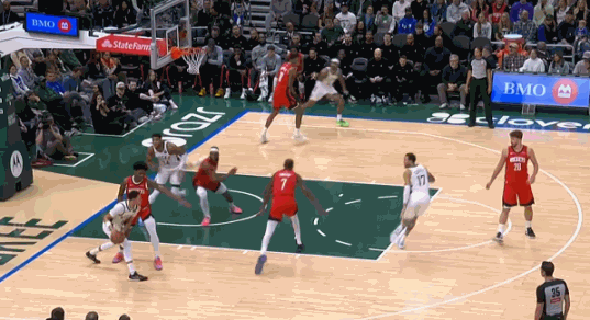 字母哥在火箭内线面对多人防守,依然拔起暴扣!