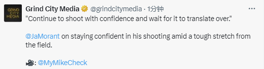 在谈到自己的投篮手感时,莫兰特说道:“很多时候我也说不准,训练时也在重复同样的投篮练习,所以就像我之前说的,继续带着信心投,耐心等手感回来就好。”
