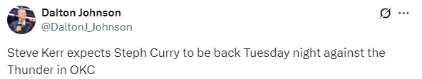 库里预计复出战雷霆!勇士遭遇魔鬼赛程:9天6连客+2次4天3赛