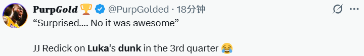 在谈到里夫斯的情况时,雷迪克表示:“里夫斯今晚的上场时间超出了出场限制一分钟,但从健康角度来看,他的身体状况相当良好,他和东契奇都表现得极其出色,给黄蜂队的防守施加了巨大压力。”在谈到东契奇第三节比赛的扣篮时,雷迪克说道:“挺意外的,不过太精彩了。”