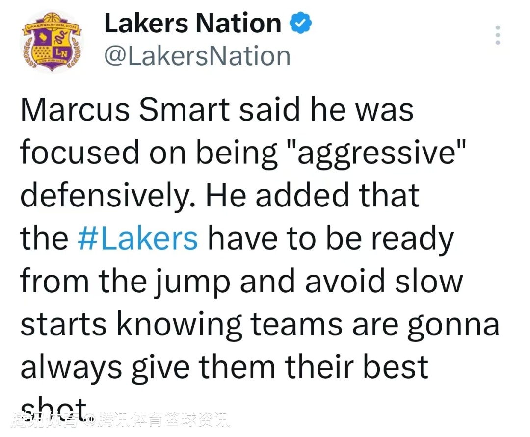 斯马特表示,他专注于在防守端保持 “侵略性”。他补充道,湖人队必须从比赛一开始就做好准备,避免慢热开局,因为他们清楚,每支球队面对湖人时都会全力以赴。