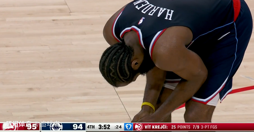 末节快船打得十分被动,哈登不仅持球突破得分,而且外线接连轰进3记三分球,连续得分带队抹平分差,比赛暂停时哈登累得直接瘫坐在替补席;92-92之后快船又被老鹰打出10-4攻势,比赛还剩90秒快船落后6分,科林斯三分打铁,哈登强突造犯规。