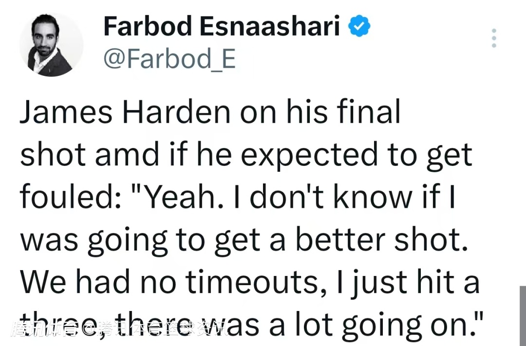 哈登谈最后一投:我不知道还能否获得更好出手机会 快船当时已无暂停