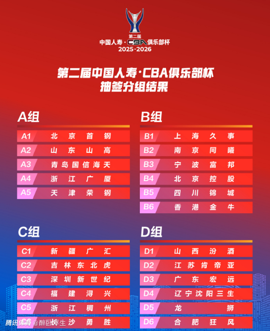 CBA俱乐部杯赛区抽签出炉:A组长沙少1队 D组武汉辽粤大战