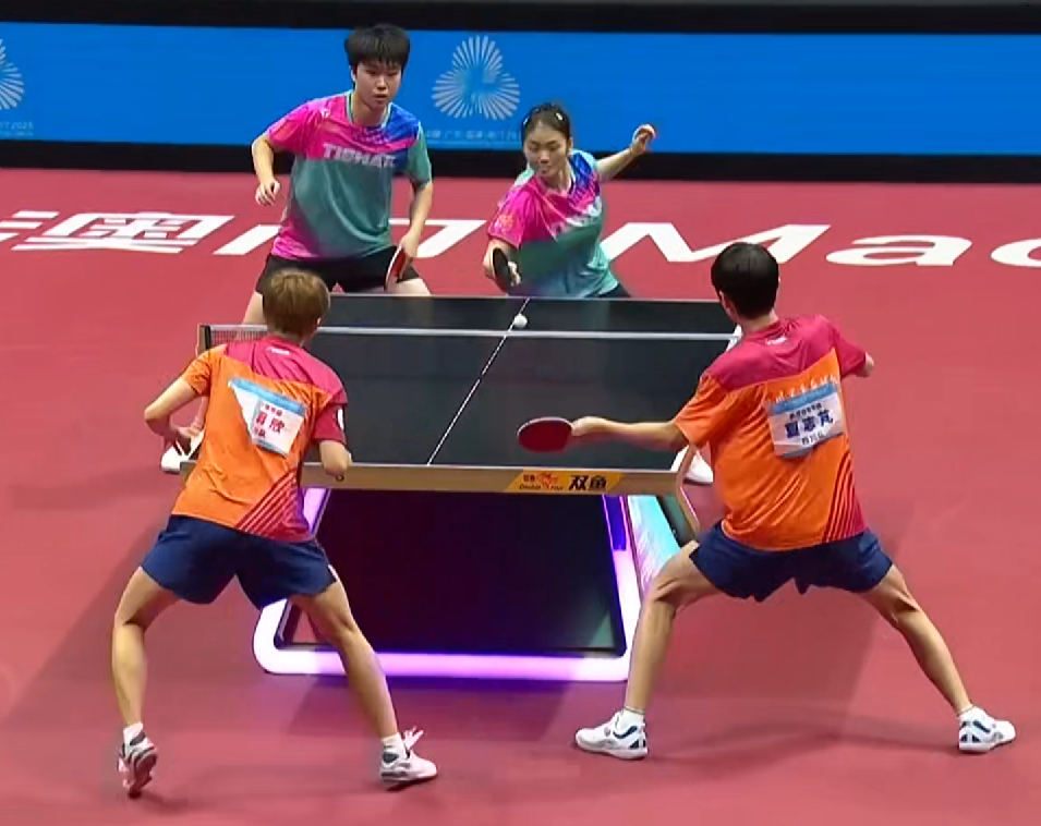 第三局夏志芃/高雨欣迅速发动以6-0、8-1、9-3、10-5领先拿到局点,被追回2分后暂停进行调整,随后再得1分以11-7取胜将罗杰乘/姚梓旋逼入绝境。第四局罗杰乘/姚梓旋强势反击拿到6个局点,被夏志芃/高雨欣追回2分后以11-6拿下,由此而扳回一局。