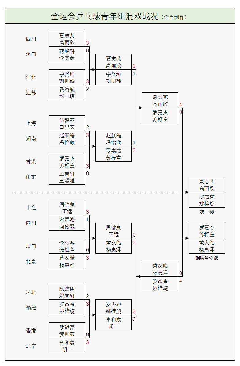 全运会乒乓:四川小将率先夺1金!青年组混双冠、亚、季军出炉