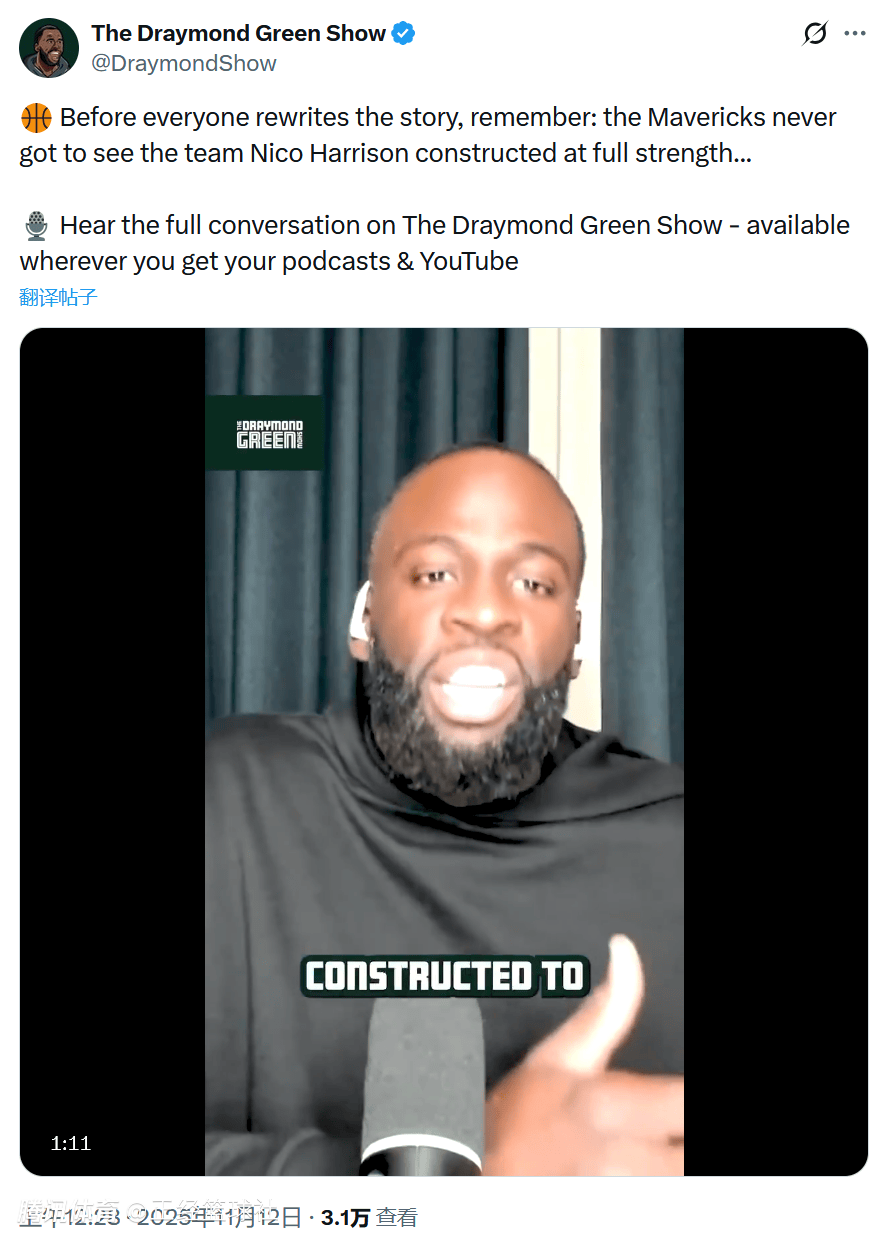 2025-11-12 07:10北京时间11月12日,新赛季NBA常规赛继续进行。在今天早些时候,独行侠队官方宣布解雇球队总经理尼克-哈里森。独行侠队的作法引来了热议,但也有人对哈里森进行了力挺,他就是勇士队球星追梦-格林。
