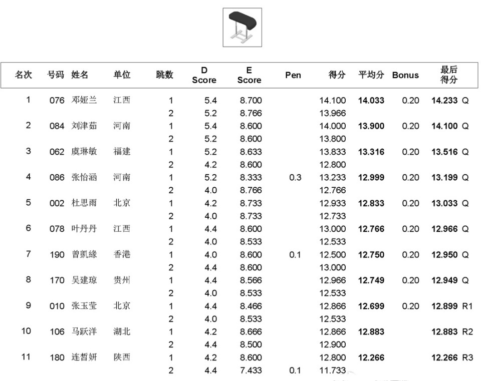 周雅琴以14.133排在第四,也顺利晋级,由她们两位压阵,这场决赛将会非常好看。