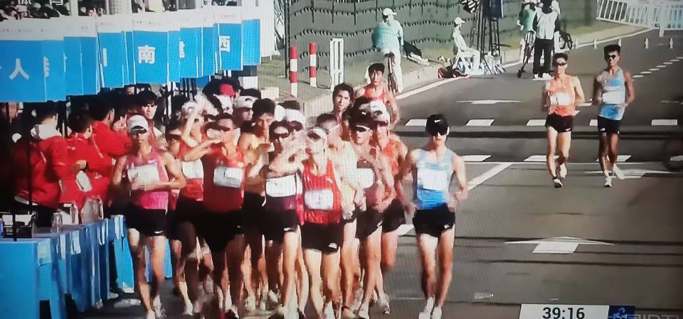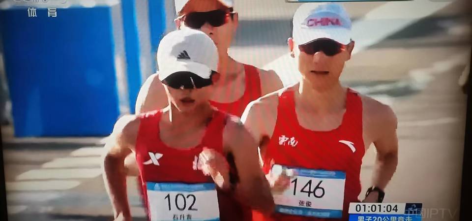 周应成领走到40多分钟的时候,他再次试图提速来扩大领先优势。他走到大约44分钟时,连续吃到两张黄卡,被判有双脚离地的犯规动作遭到警告,这立即影响到了他随后技术动作的发挥。