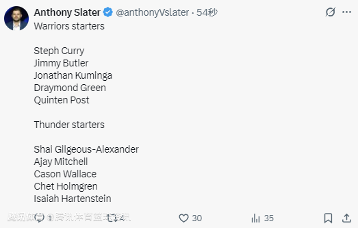 勇士vs雷霆首发出炉:库里病愈回归 率队挑战亚历山大