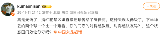 赛后知名媒体人“kumaonisan”就狠批潘红艳:“