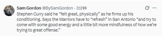 库里:我们需要在攻防两端更有执行力 背靠背打马刺会尝试出战