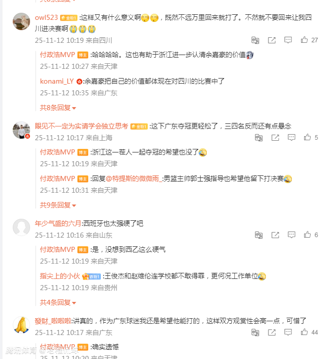 消息传出时,无数网友的反应是“胡说”,大家普遍认为余嘉豪已经代表浙江队参加了半决赛。即便浙江队无缘决赛,他们还要参加之后的三四名比赛,更别说浙江队打进了决赛,余嘉豪完全没有理由在这个时候连夜离开浙江队、不参加全运会的最后一场比赛。