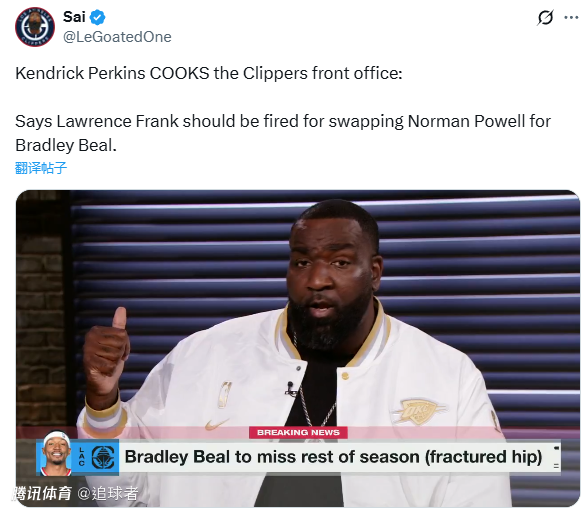 32岁的比尔提前赛季报销引热议,名嘴帕金斯直言:尼科-哈里森因为独行侠3胜8负的战绩刚被解雇,现在该轮到弗兰克了。我为比尔感到难过,但在过去三年里,历史向我们表明他一直受到某些问题的困扰,比尔在过去三年与太阳队的合作中毫无建树。而你用比尔换了一个为你场均贡献24分、接近全明星水准的鲍威尔,这简直太离谱了。