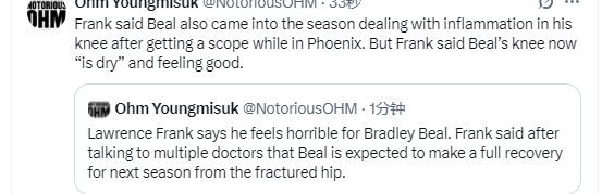 2025-11-13 10:10北京时间11月13日,快船队篮球运营总裁劳伦斯-弗兰克接受采访,谈到了因伤赛季报销的比尔,还透露了莱昂纳德的伤病情况。