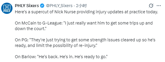 2025-11-14 06:00北京时间11月14日,76人主帅尼克-纳斯在球队训练结束后接受媒体采访,并通报了球队最新伤情。