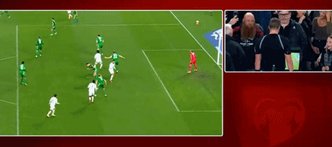 可以说,C罗这张红牌没有太大争议。但C罗却有些情绪失控,离场时他依然不依不饶,撇嘴露出搞怪表情,并且竖大拇指嘲讽主裁判罚。而C罗此举遭到爱尔兰球迷狂嘘,并且模仿他的“爱哭鬼”手势回击C罗。