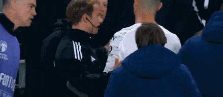 随后C罗在离场时,还与爱尔兰主帅进行激烈交流,C罗指着爱尔兰主帅鼻子说些什么,显然情绪有些失控,最终他被葡萄牙助教卡瓦略和队友鲁本-迪亚斯劝回,在向看台鼓掌后C罗黯然离场。