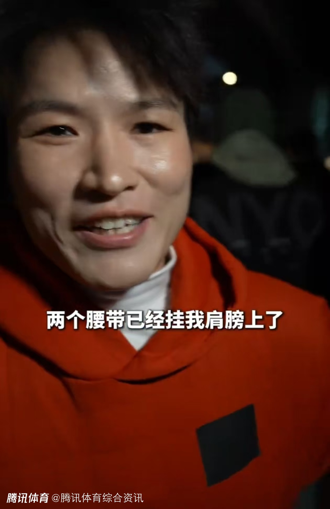 张伟丽在接受采访时表示:“感觉两个腰带已经挂我肩膀上了,必须得自信。”