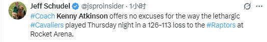 2025-11-14 12:10北京时间11月14日,NBA常规赛继续进行,猛龙队126-113击败骑士队。赛后,骑士队主教练阿特金森接受媒体采访。