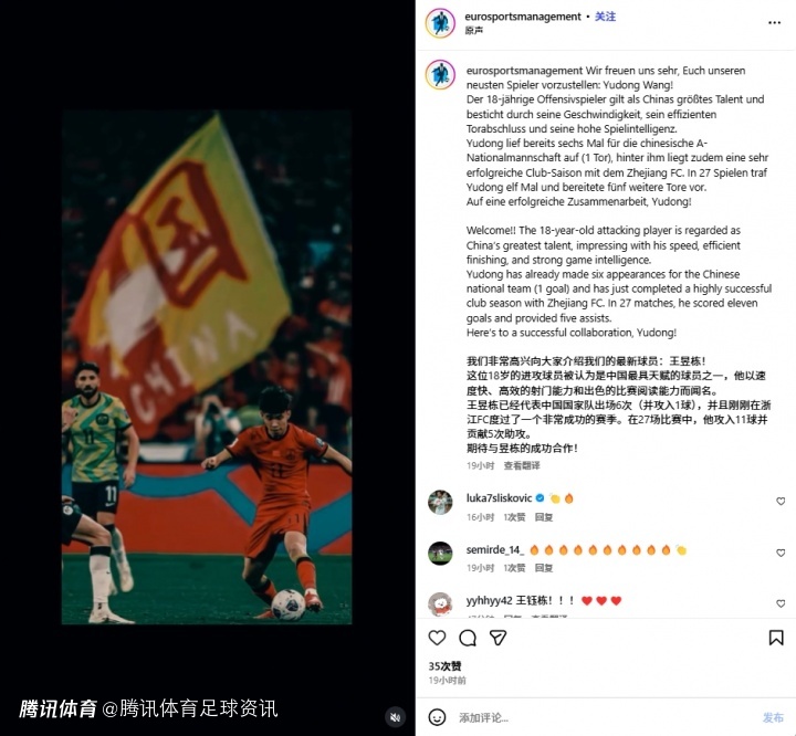 2025-11-14 13:10北京时间11月14日,欧洲经纪公司Euro Sports Management(ESM)正式宣布,与中国男足球员王钰栋达成合作协议。