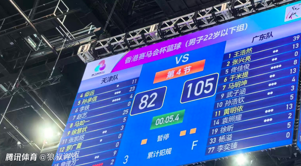 第四节,孙承信、马如一试图率队缩小分差,但王浩然持续火热的竞技状态下,最终,广东22男篮顶住天津反扑,以105-82击败天津,取得小组赛三连胜。