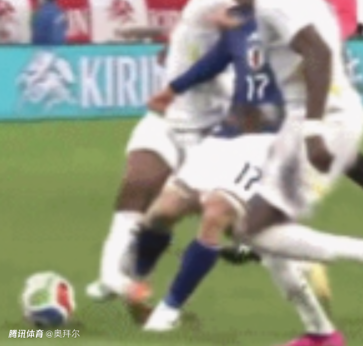 比赛的第50分钟,田中碧右脚射门,但一脚踢中试图解围的阿布的右脚,后者右脚疑似被踢断,在半空中就明显变形。