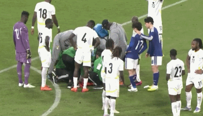 比赛足足中断了4分钟之后,在长时间的治疗之后,阿布被担架抬离球场,全场球迷送上掌声。24岁的阿布效力于法甲图卢兹,本赛季法甲出场8次共532分钟。此役是阿布第六次为加纳出场,也是自5月31日以来首次为加纳出场。