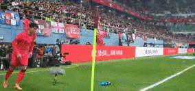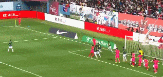 第11分钟,韩国队角球进攻,李在城近距离头球攻门被封堵。