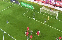 第24分钟,李在城中路大力抽射,门将比斯卡拉奋力将球扑出。