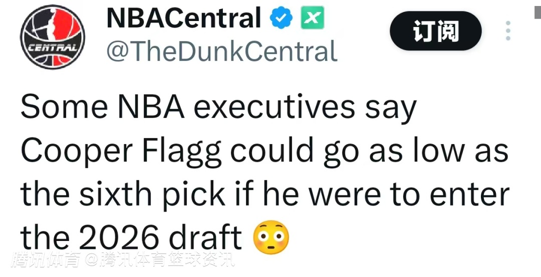 2025-11-15 05:50北京时间11月15日,根据记者Kevin O'Connor的报道,一些NBA高管表示,若库珀-弗拉格参加2026年选秀,他的顺位可能低至第六位。