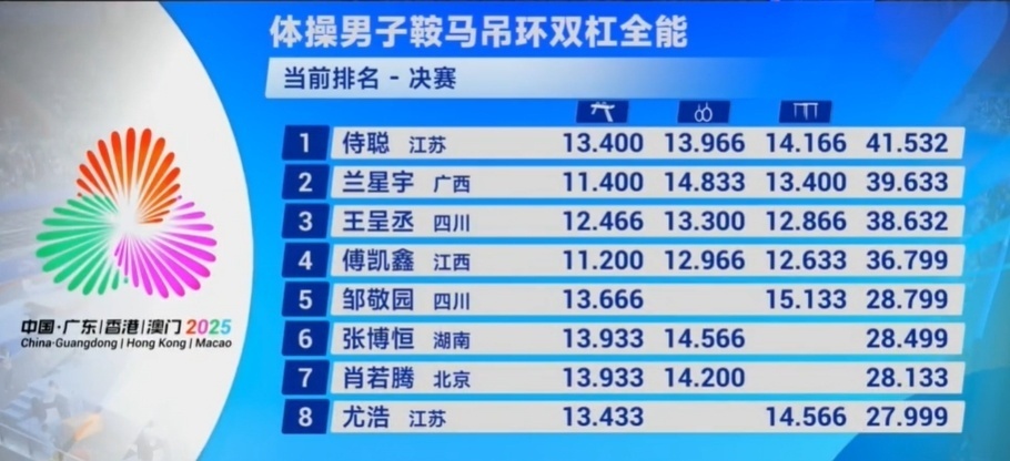 以上三人就成为了首届全运会鞍吊双多项/半全能奖牌得主。