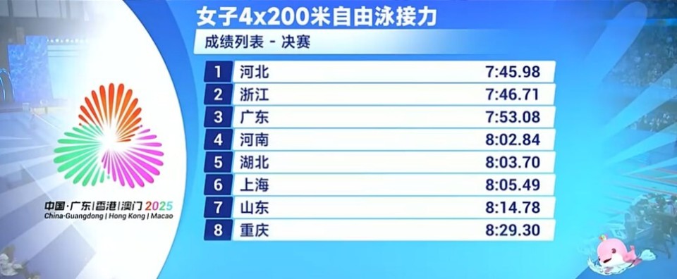小孩姐于子迪再夺一金!全运会4×200米自由泳接力:河北队逆转夺冠