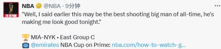 2025-11-15 10:30北京时间11月15日,NBA杯赛继续进行,尼克斯队上半场78-68领先热火队10分。唐斯本场比赛出战20分钟,16投11中(三分球10投6中)得到31分3篮板2助攻1抢断。